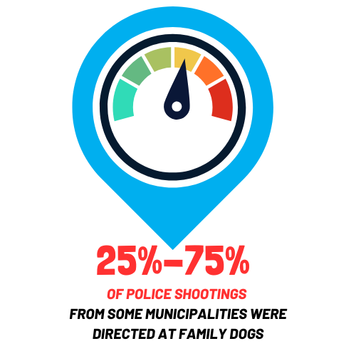 The ASPCA article goes on to say this: “Incidents involving officer shootings of pets often account for a significant percentage of the total firearms discharges in a police department or agency — between 25–75% of police shootings from some municipalities were directed at family dogs.” [emphasis mine]