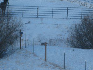 An alert neighbor called me Feb 10 to say this bobcat was crossing through our middle pasture. By the time I ran to a window with a view and got the camera ready, it had crossed into her pasture. You can see one of her two mules watching on as this feline visitor followed the creek bed down the valley.